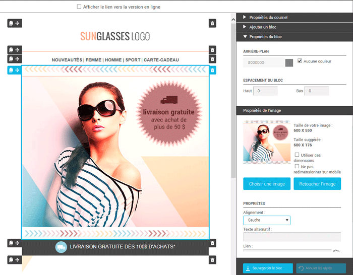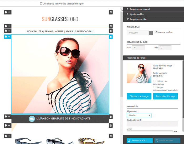 Lorsque vous avez plusieurs images de tailles différentes qui s'affichent sur la même ligne ou colonne, cela peut créer un déséquilibre dans le visuel de votre courriel. Pour aller chercher un look plus uniforme, vous pouvez les recadrer en utilisant le même ratio. Cela vous évitera de vous casser la tête et d'avoir à effectuer des calculs pour qu'elles aillent les mêmes proportions.