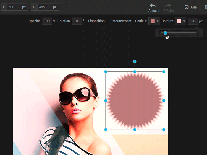 Pour modifier la taille de la bordure, entrez un nombre entier de pixels ou faites glisser le curseur.