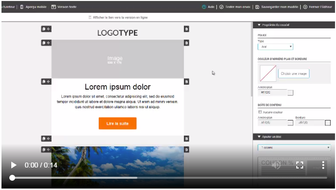 - Parcourez les catégories de bloc disponibles et sélectionnez une rangée qui comporte au moins un bloc image (rectangle gris affichant le mot image), puis glissez le bloc à l'endroit approprié dans votre modèle en maintenant la pression sur le bouton gauche de votre souris.