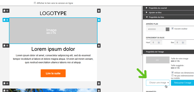 Pour rechercher une image de la banque d'images et l'ajouter dans le bloc d'images :