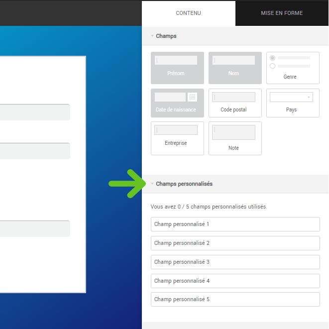 Nous vous suggérons de donner des noms significatifs à vos champs personnalisés avant de les ajouter à un formulaire. De cette façon, il sera plus facile de comprendre l’information quand vous consulterez les données de vos contacts. Cliquez ici pour savoir comment configurer vos champs personnalisés