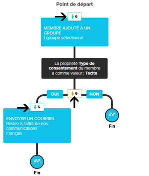 Si vous avez sélectionné qu'un contact peut passer dans le scénario "une seule fois", le nombre de passage sera égal au nombre de contacts ayant passé par cette étape. Si vous avez spécifié qu'un contact peut passer dans le scénario "plusieurs fois", il est possible que le nombre de passages soit plus élevé que le nombre de contacts ayant passé par cette étape.
