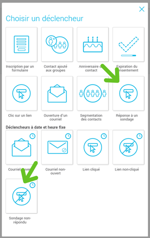 5. Choisissez le déclencheur approprié : Réponse à un sondage ou Sondage non-répondu.